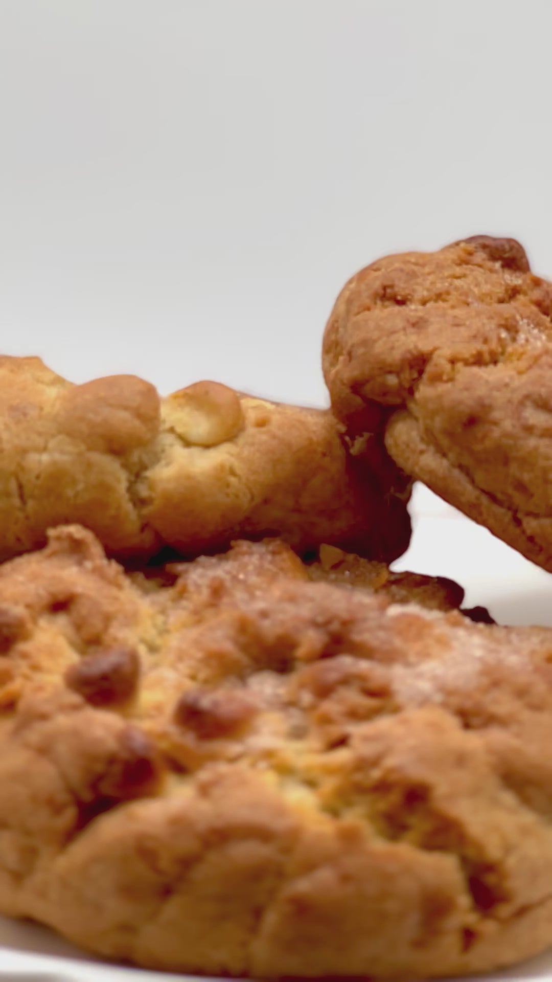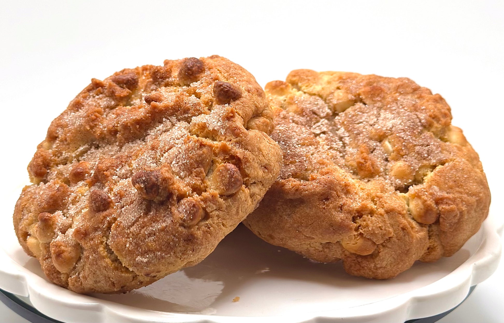 Ghirardelli White chocolate chips dance with brown sugar, cinnamon and butter. Then it is dusted with cinnamon sugar and a little magic.